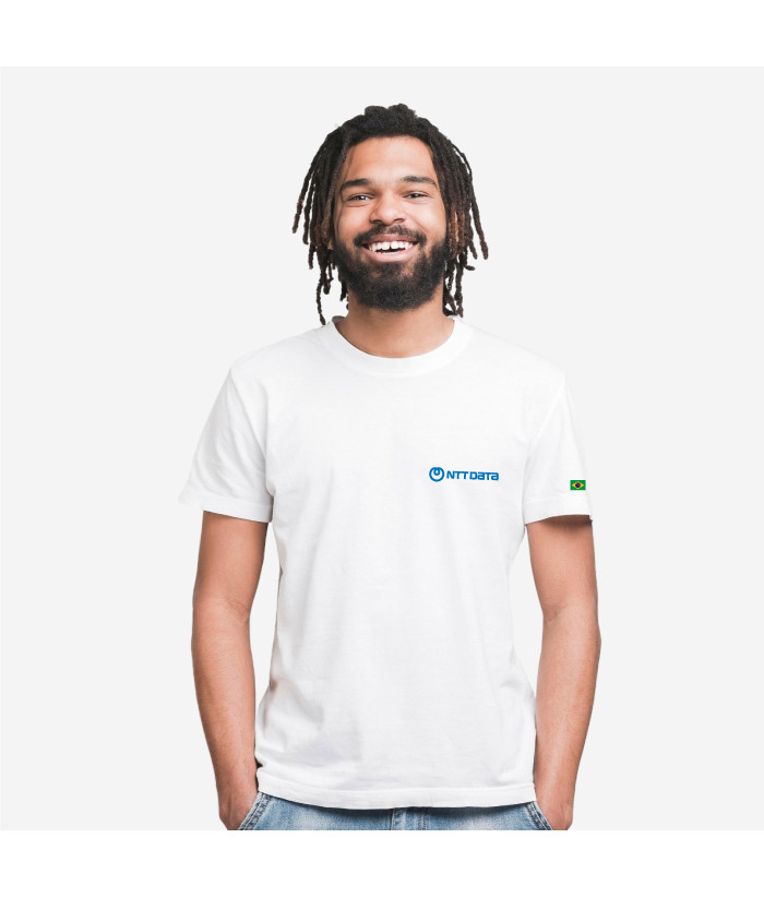 Camiseta Algodao Branca com Bandeira na Manga - NTTDATA Company Store
